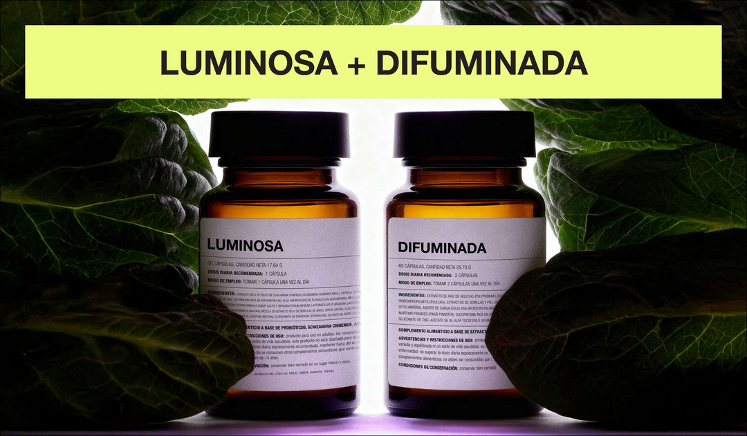 - Tomar 1 cápsula de LUMINOSA + 2 cápsulas de DIFUMINADA juntas idealmente por la tarde o noche acompañada de un vaso de agua para evitar molestias gástricas. Para uso continuado sin necesidad de pausas.